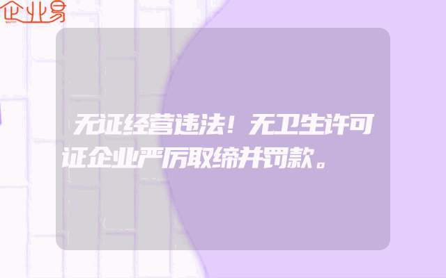 - 无证经营违法!无卫生许可证企业严厉取缔并罚款。