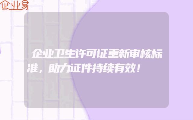 - 企业卫生许可证重新审核标准,助力证件持续有效!