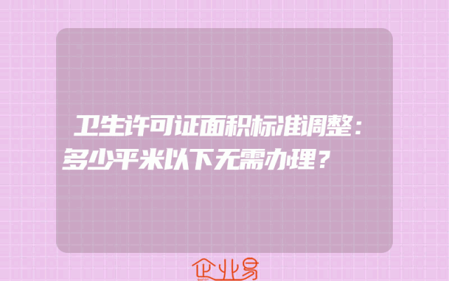- 卫生许可证面积标准调整:多少平米以下无需办理?