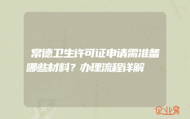- 常德卫生许可证申请需准备哪些材料?办理流程详解