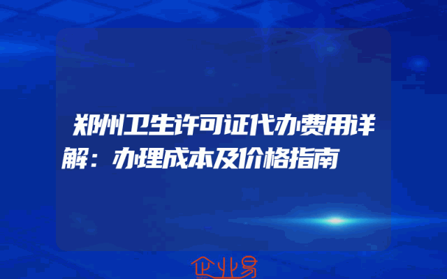 - 郑州卫生许可证代办费用详解:办理成本及价格指南