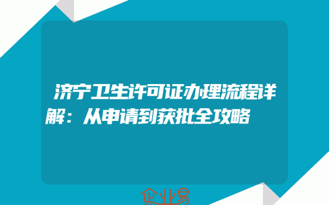 - 济宁卫生许可证办理流程详解:从申请到获批全攻略