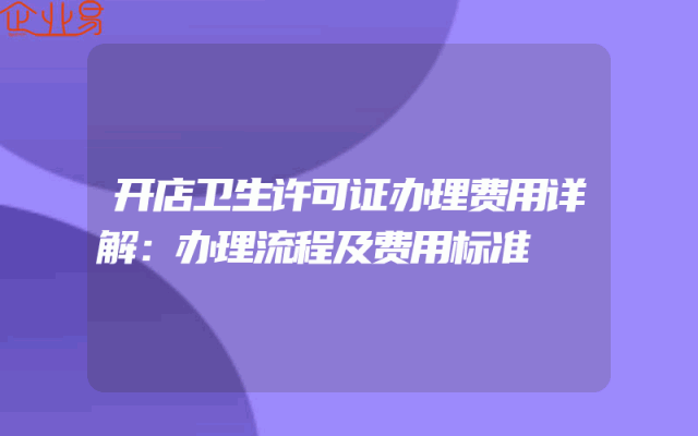 - 开店卫生许可证办理费用详解:办理流程及费用标准