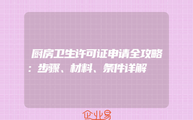 - 厨房卫生许可证申请全攻略:步骤、材料、条件详解