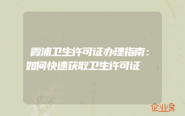 - 霞浦卫生许可证办理指南:如何快速获取卫生许可证