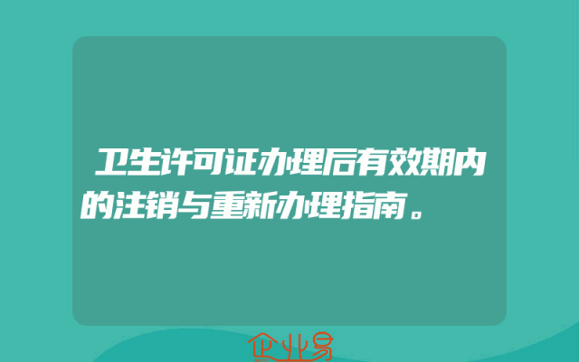- 卫生许可证办理后有效期内的注销与重新办理指南。