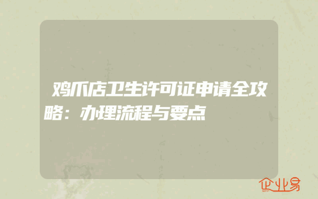 - 鸡爪店卫生许可证申请全攻略:办理流程与要点