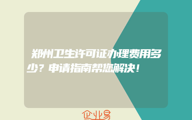 - 郑州卫生许可证办理费用多少?申请指南帮您解决!