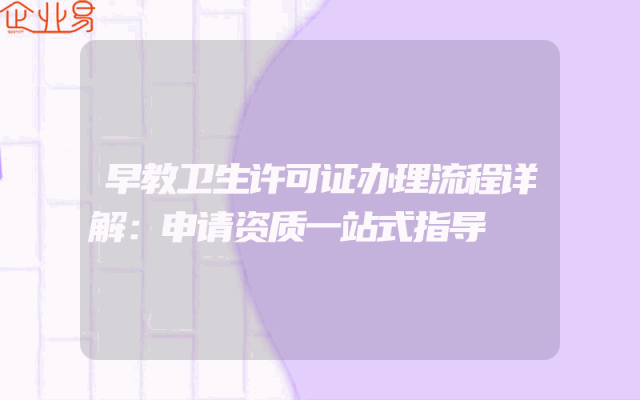 - 早教卫生许可证办理流程详解:申请资质一站式指导