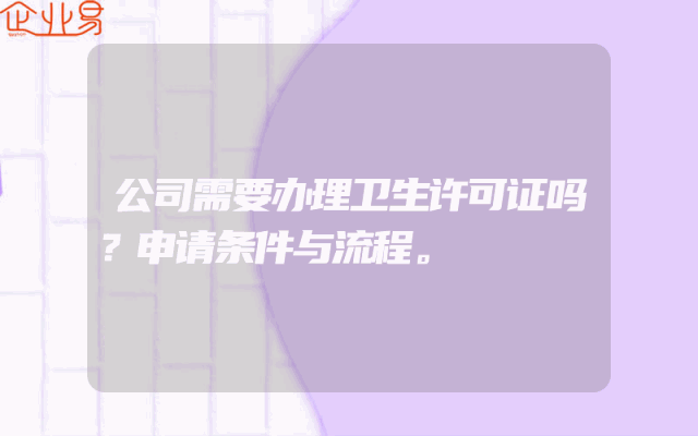 - 公司需要办理卫生许可证吗?申请条件与流程。