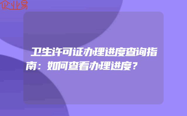 - 卫生许可证办理进度查询指南:如何查看办理进度?