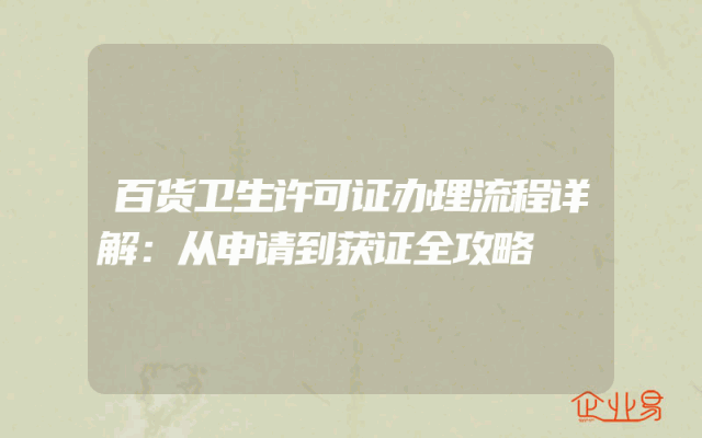 - 百货卫生许可证办理流程详解:从申请到获证全攻略