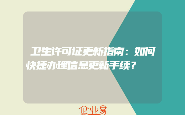 - 卫生许可证更新指南:如何快捷办理信息更新手续?