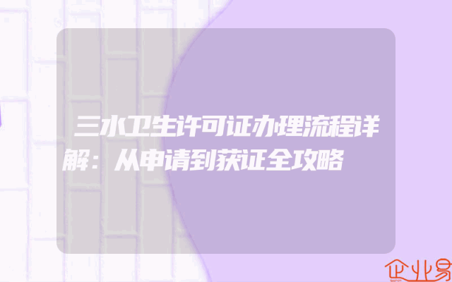 - 三水卫生许可证办理流程详解:从申请到获证全攻略