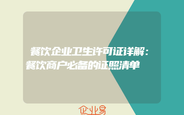 - 餐饮企业卫生许可证详解:餐饮商户必备的证照清单