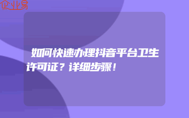 - 如何快速办理抖音平台卫生许可证?详细步骤!