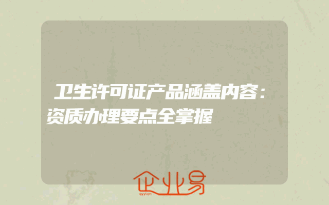 - 卫生许可证产品涵盖内容:资质办理要点全掌握