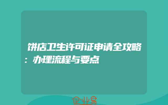 - 饼店卫生许可证申请全攻略:办理流程与要点