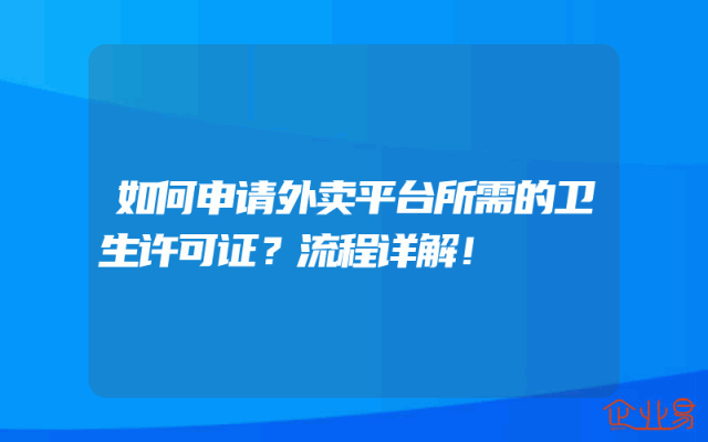 - 如何申请外卖平台所需的卫生许可证?流程详解!