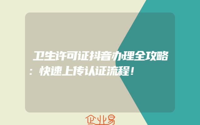 - 卫生许可证抖音办理全攻略:快速上传认证流程!