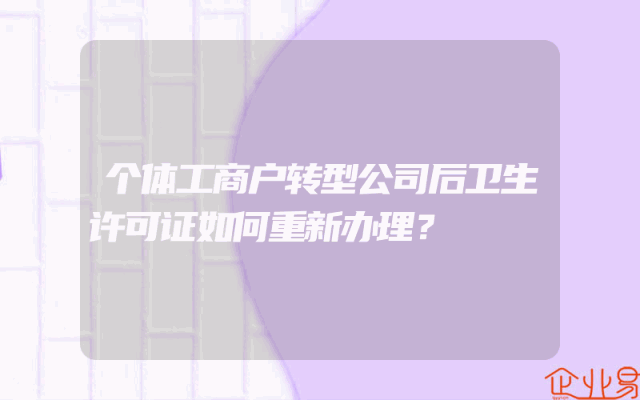 - 个体工商户转型公司后卫生许可证如何重新办理?