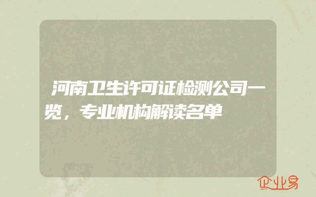 - 河南卫生许可证检测公司一览,专业机构解读名单