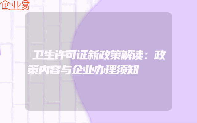 - 卫生许可证新政策解读:政策内容与企业办理须知
