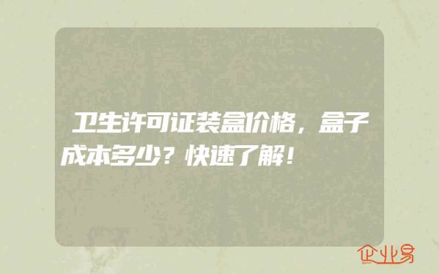 - 卫生许可证装盒价格,盒子成本多少?快速了解!