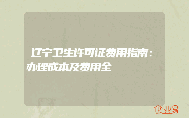 - 辽宁卫生许可证费用指南:办理成本及费用全