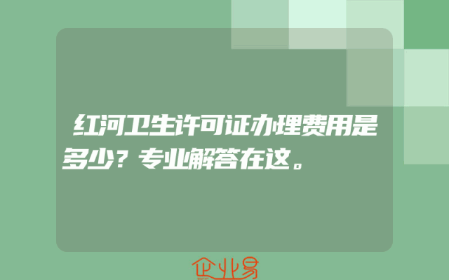 - 红河卫生许可证办理费用是多少?专业解答在这。