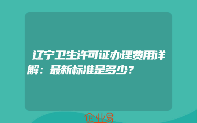 - 辽宁卫生许可证办理费用详解:最新标准是多少?