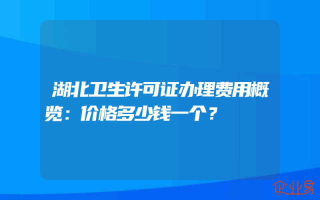 - 湖北卫生许可证办理费用概览:价格多少钱一个?