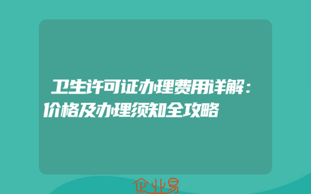 - 卫生许可证办理费用详解:价格及办理须知全攻略