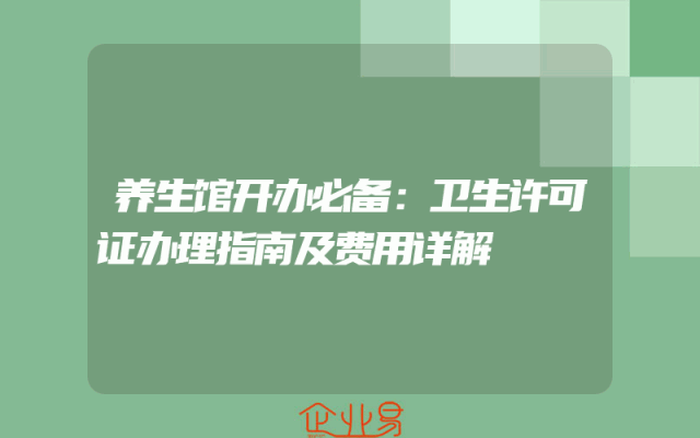- 养生馆开办必备:卫生许可证办理指南及费用详解