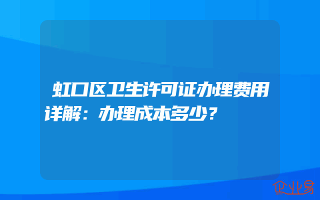 - 虹口区卫生许可证办理费用详解:办理成本多少?