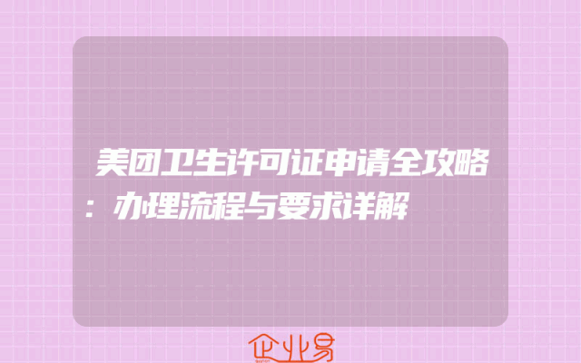 - 美团卫生许可证申请全攻略:办理流程与要求详解