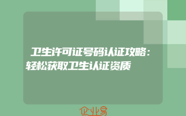 - 卫生许可证号码认证攻略:轻松获取卫生认证资质