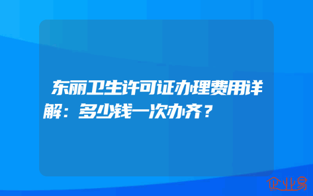 - 东丽卫生许可证办理费用详解:多少钱一次办齐?