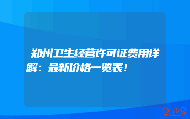 - 郑州卫生经营许可证费用详解:最新价格一览表!