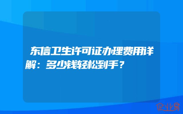 - 东信卫生许可证办理费用详解:多少钱轻松到手?