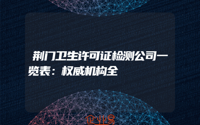 - 荆门卫生许可证检测公司一览表:权威机构全