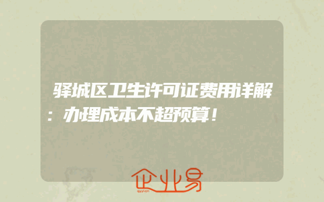 - 驿城区卫生许可证费用详解:办理成本不超预算!