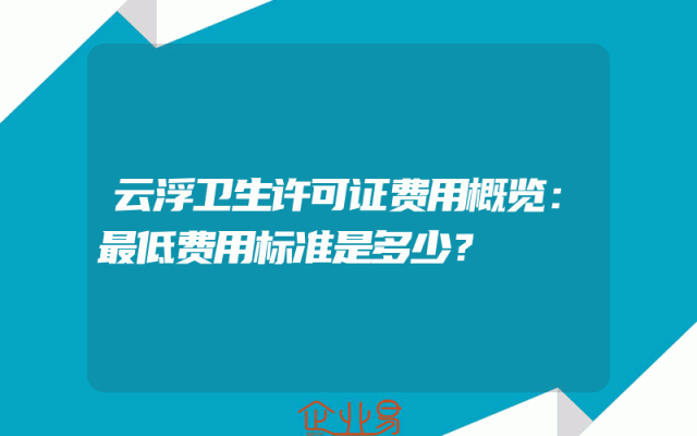 - 云浮卫生许可证费用概览:最低费用标准是多少?