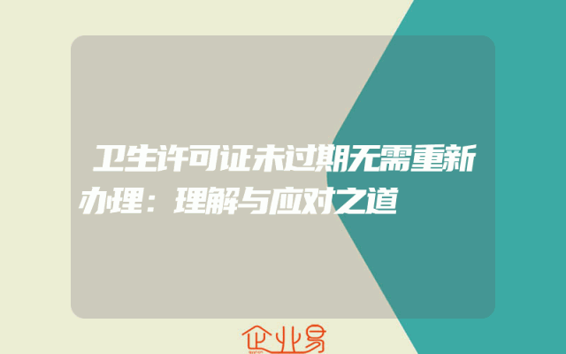 - 卫生许可证未过期无需重新办理:理解与应对之道