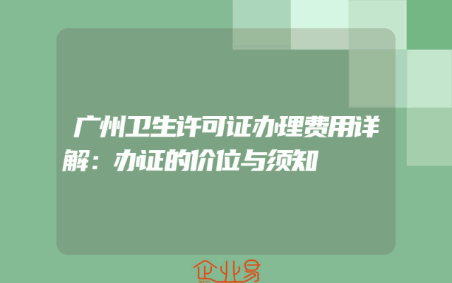 - 广州卫生许可证办理费用详解:办证的价位与须知
