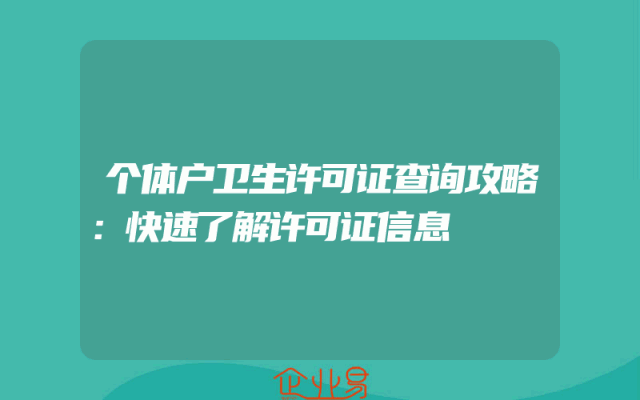 - 个体户卫生许可证查询攻略:快速了解许可证信息