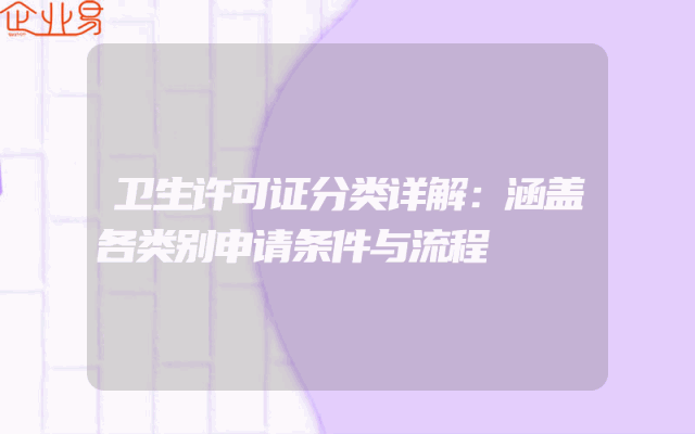 - 卫生许可证分类详解:涵盖各类别申请条件与流程