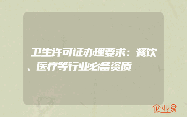 - 卫生许可证办理要求:餐饮、医疗等行业必备资质