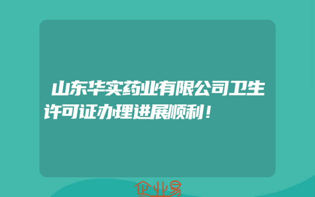 - 山东华实药业有限公司卫生许可证办理进展顺利!