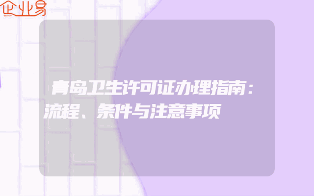 - 青岛卫生许可证办理指南:流程、条件与注意事项